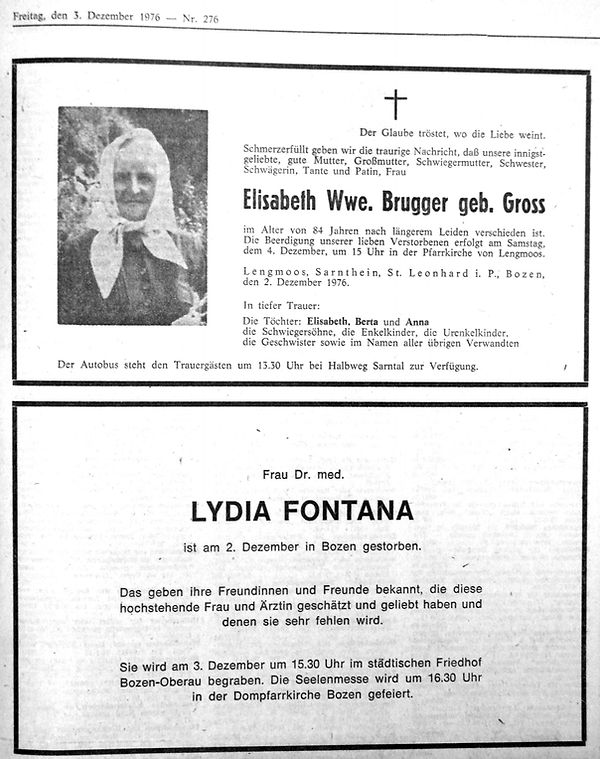 Mit der Todesanzeige in der Dolomitenzeitung nahmen ihre Freunde Abschied von ihr. Ob es auch eine Anzeige der Familie gab, ist nicht bekannt.